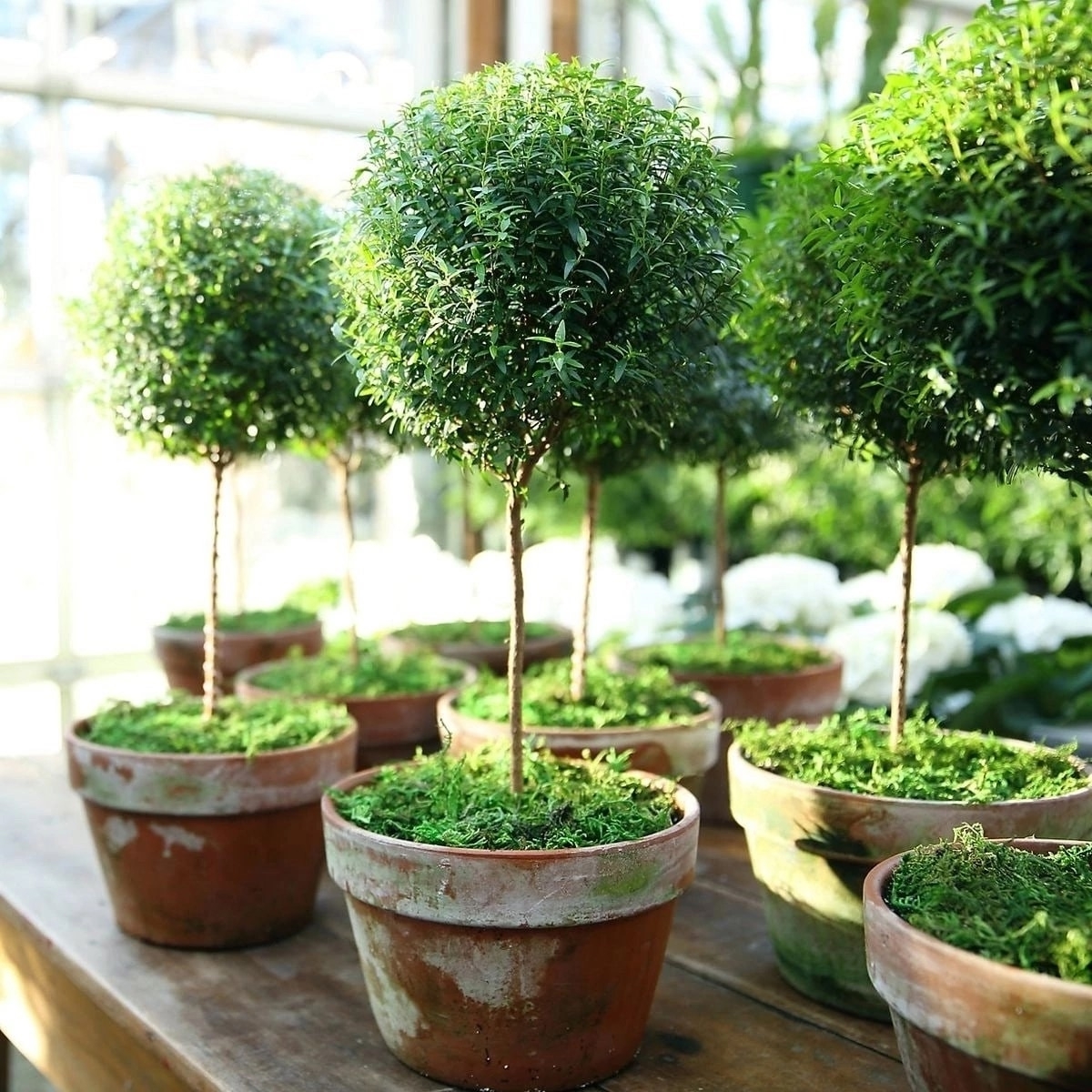 Цветёт мирт изящными мелкими цветками белого или бледно-розового оттенка. В это время растение выглядит особенно декоративно, наполняя пространство фитонцидами и ощущением свежести, создавая в доме атмосферу уюта и спокойствия.