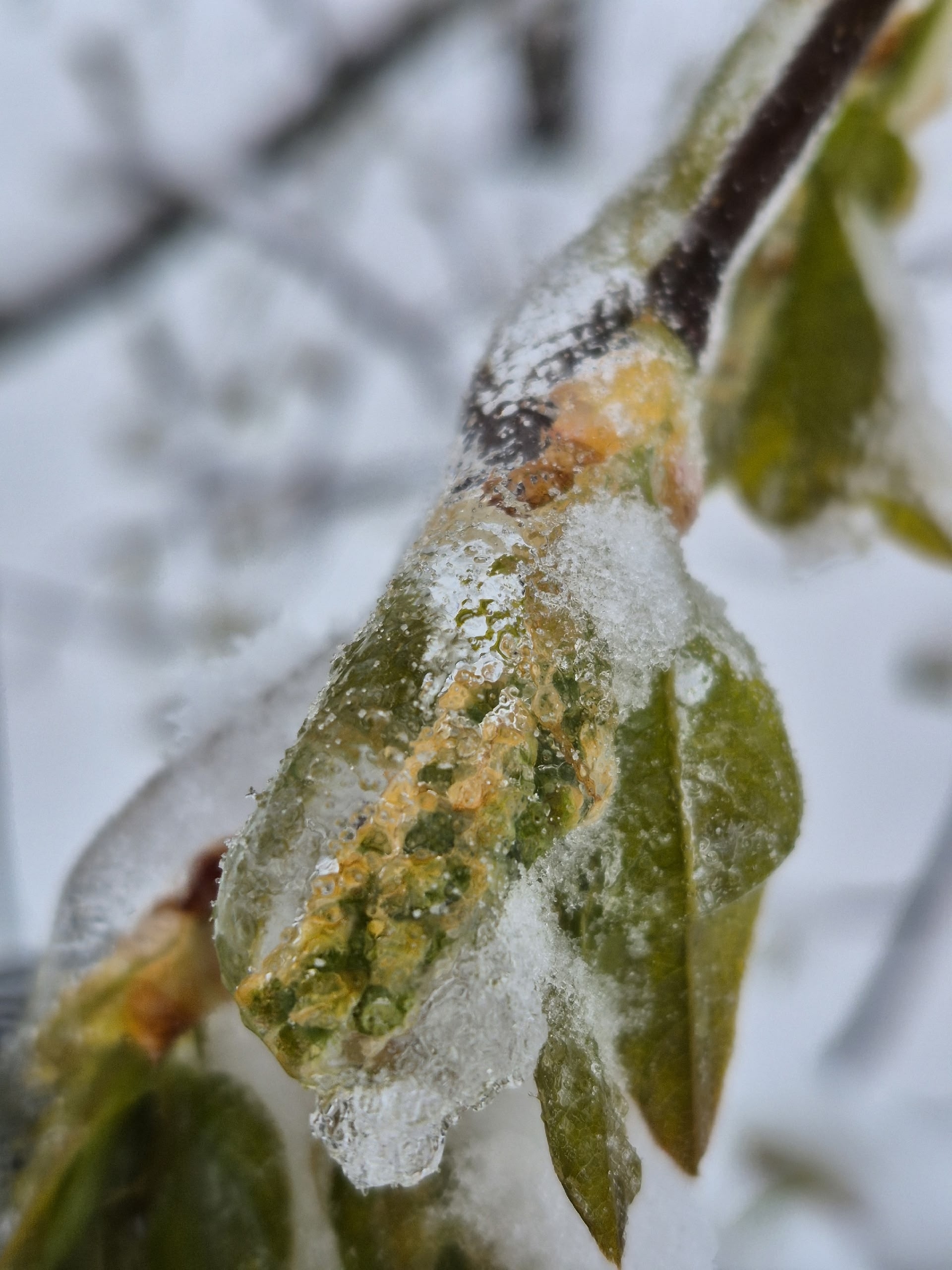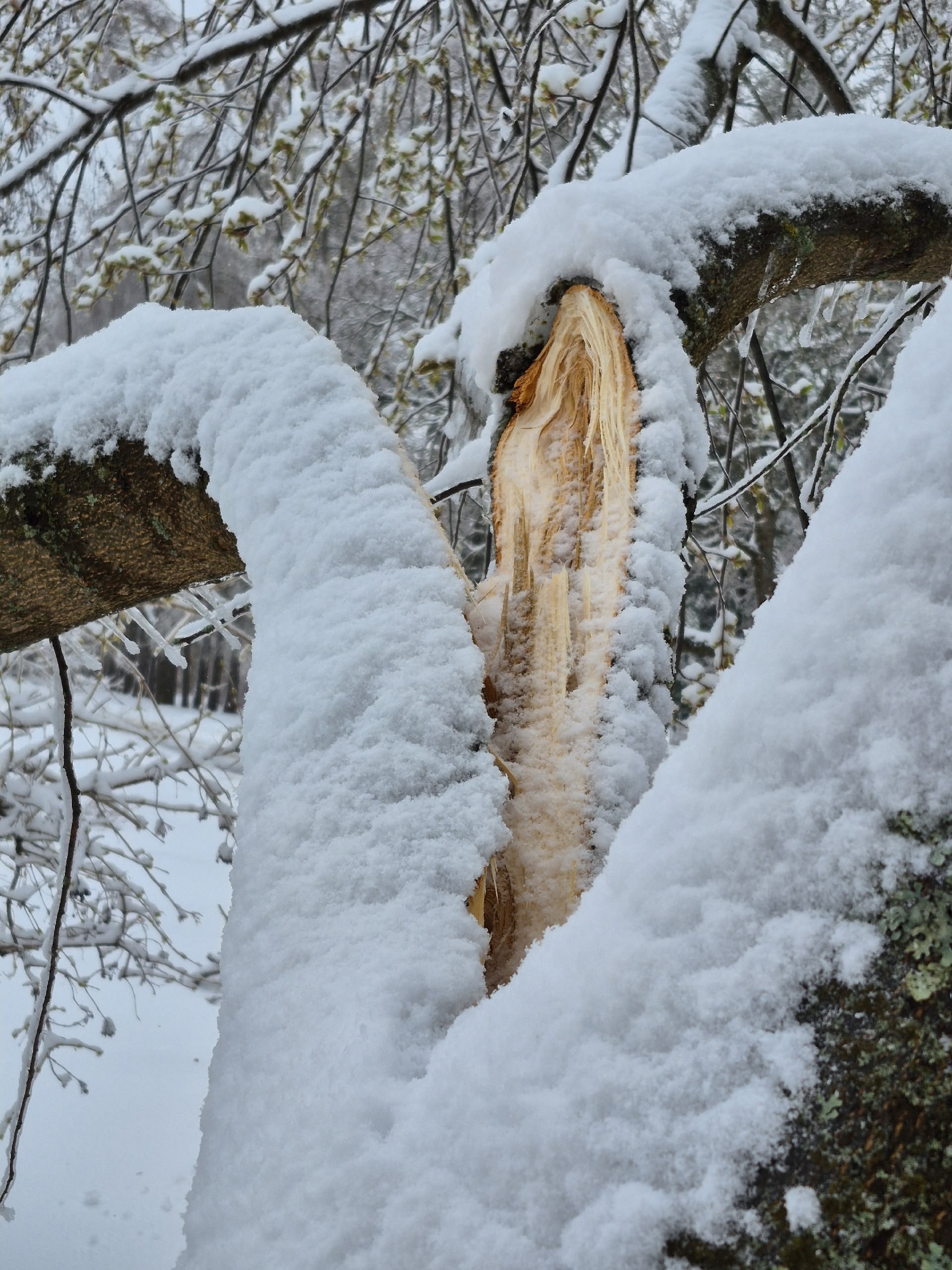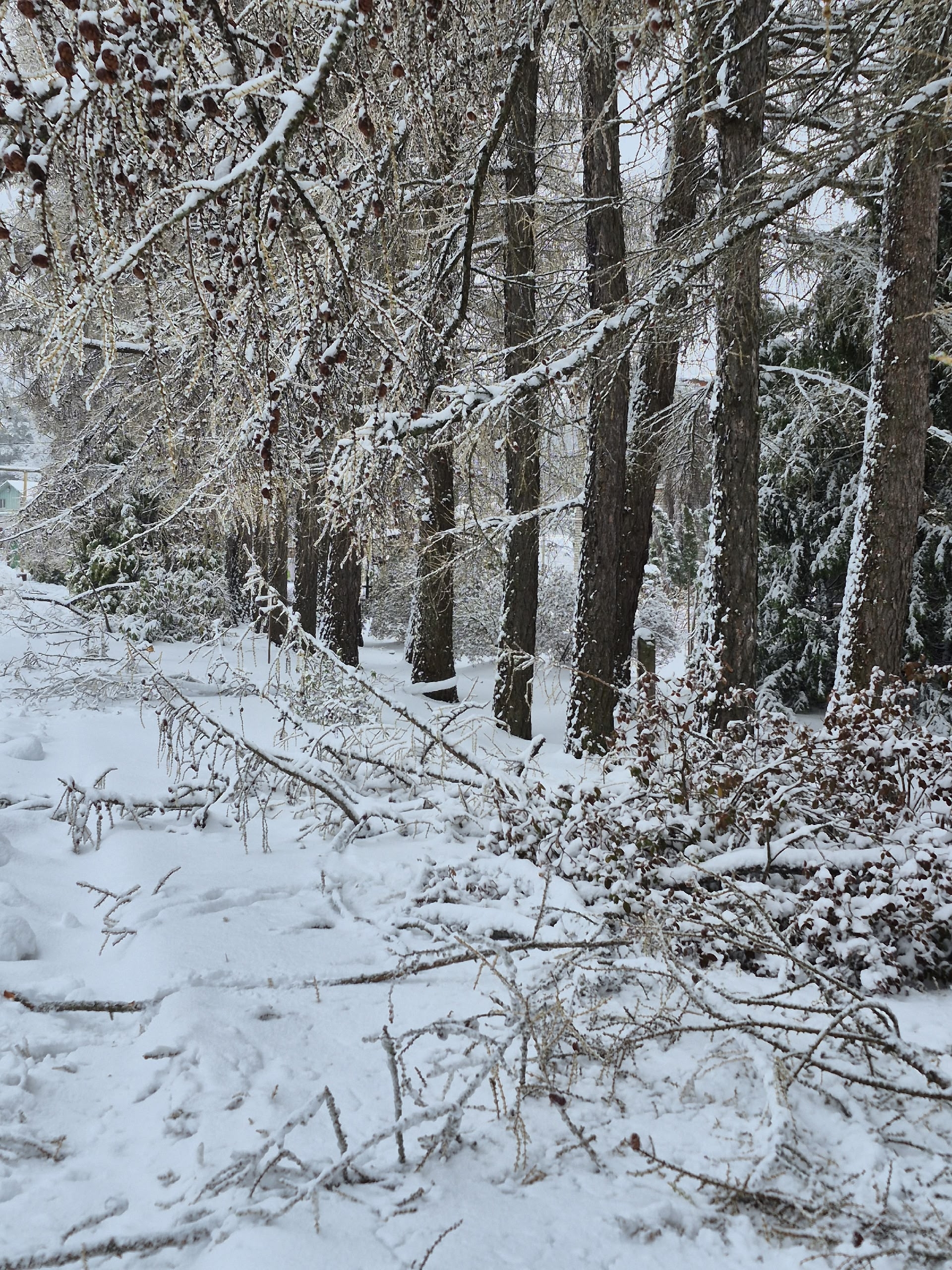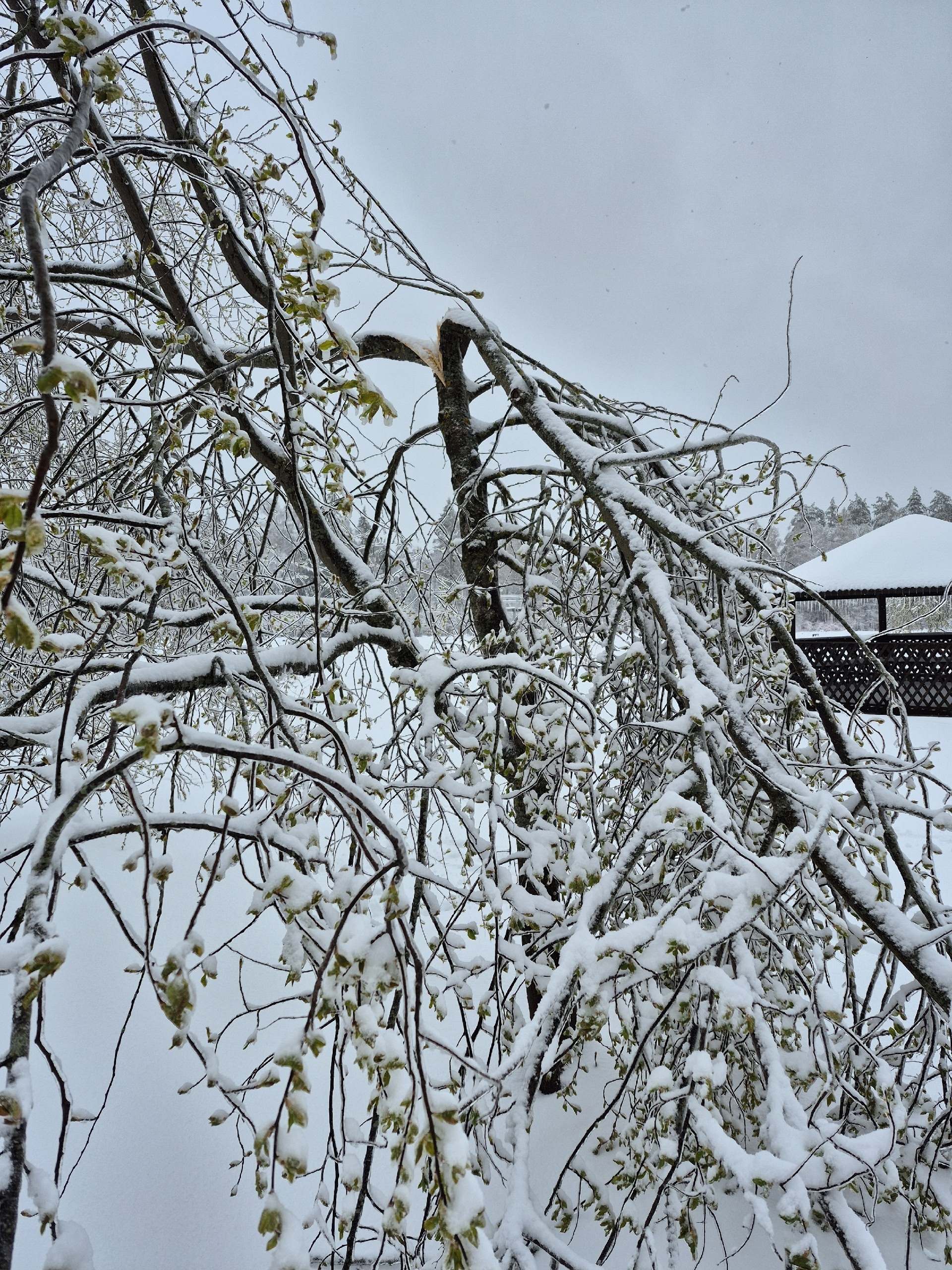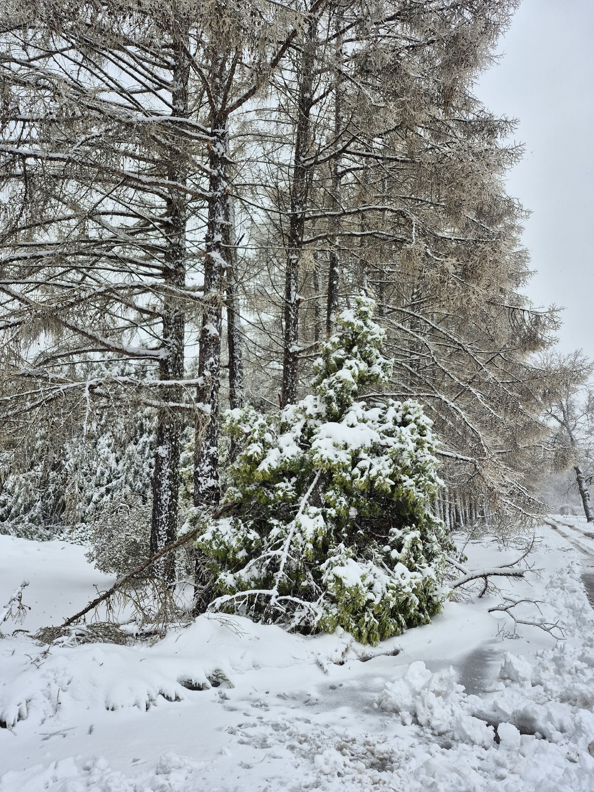 В конце апреля в ботаническом саду произошла погодная аномалия: выпало около 16 см мокрого снега, образовалась ледяная корка. Это привело к повреждениям растений: ломаются туи, надламываются ветви лиственниц, пострадали и старые деревья. Оценить полный масштаб ущерба пока невозможно до схода снега, однако уже понятно, что предстоят значительные работы по санитарной обрезке и восстановлению.