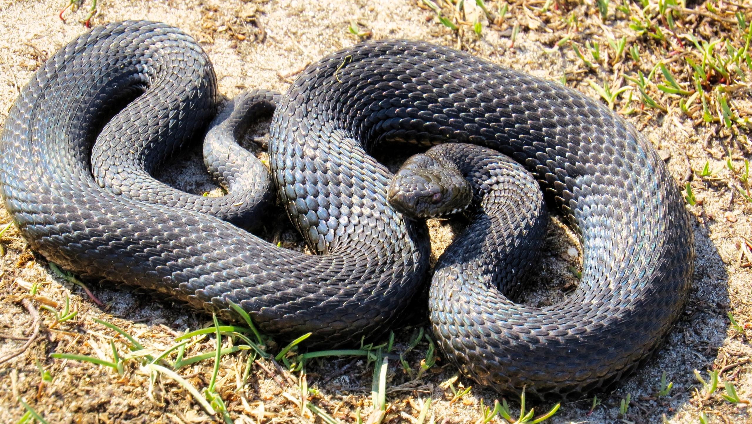 Змеи необычного окраса – пепельно-серые.