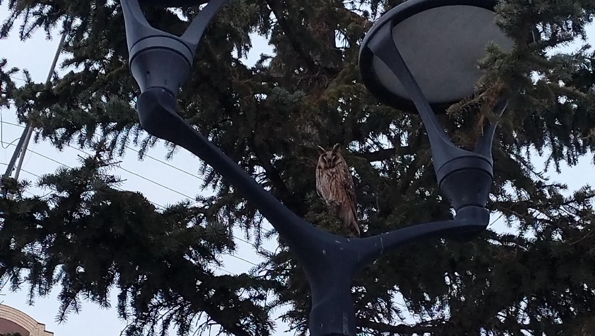 Очередная встреча горожан с лесной гостьей произошла на бульваре Чавайна. На этот раз в поле зрения попала ушастая сова. Пернатое облюбовало еловую крону на бульваре.