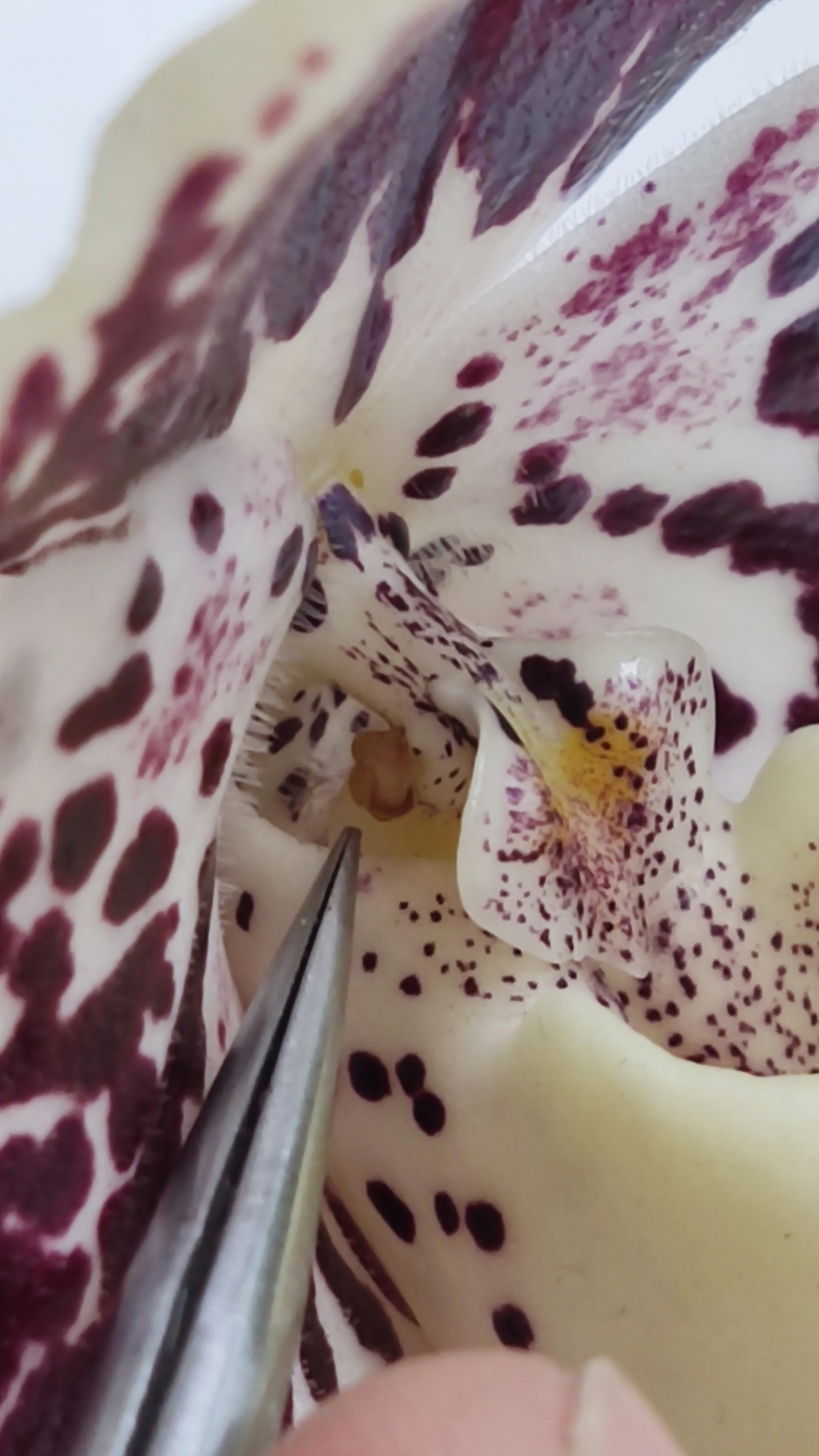 При ручном скрещивании цветоводу приходится аккуратно «разобрать» цветок. Пыльцу извлекают и переносят на рыльце тонким инструментом, чтобы не повредить ткани растения.