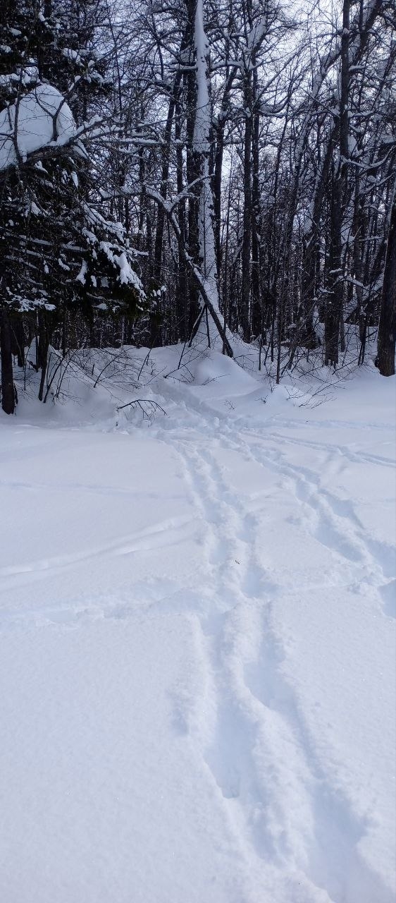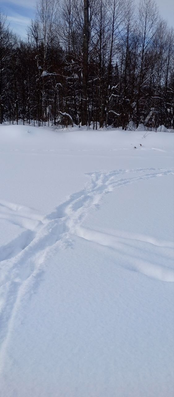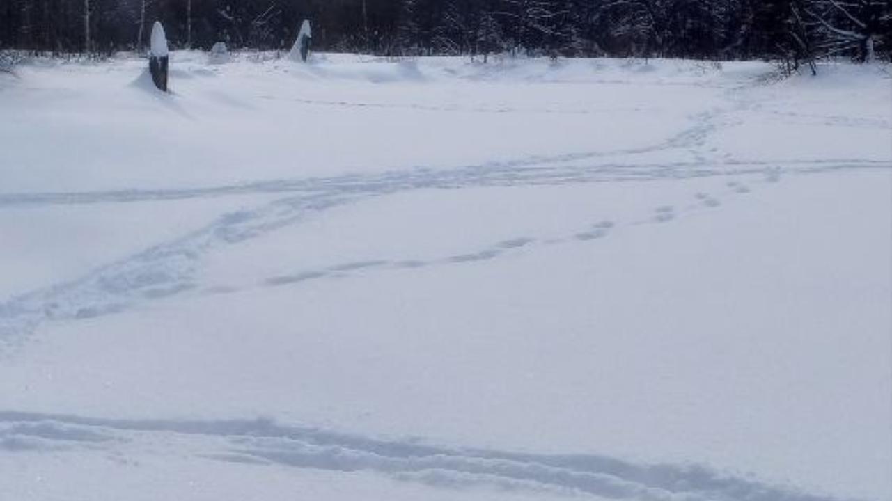 На старице замёрзшей реки Илеть наблюдают многочисленные следы диких животных.