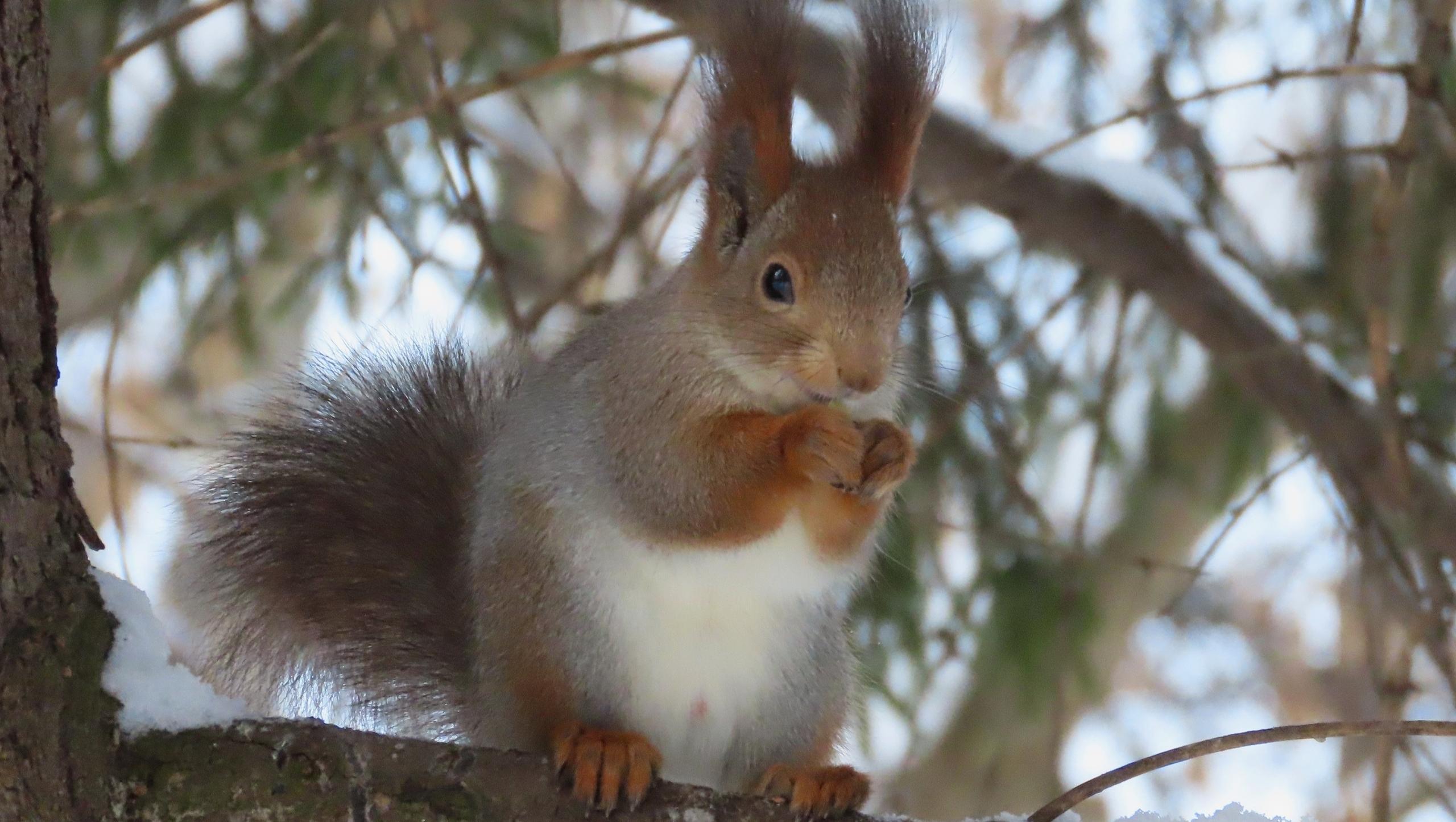 Так, рыжие красавицы с удовольствием лакомятся грецкими, кедровыми орешками, фундуком в скорлупе, не жареными тыквенными семечками, сушёным абрикосом в небольших дозах, яблочками, кабачками, еловыми и сосновыми шишками с семенами.