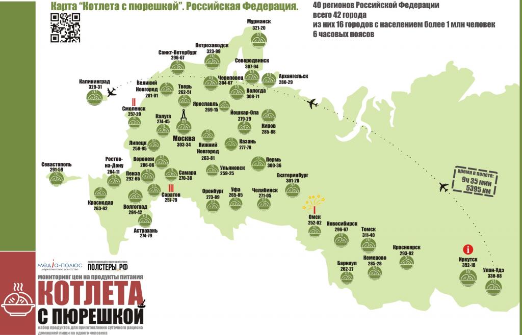 При этом, среднестатистический житель Йошкар-Олы потратит на «Котлету с пюрешкой» 28,8% своего среднего заработка. В Москве — 10%, в Санкт-Петербурге — 13,9%. В среднем, жители РФ потратят на такой рацион 20-30%.