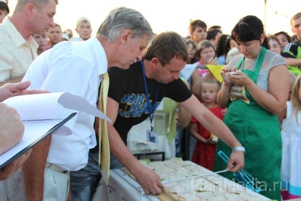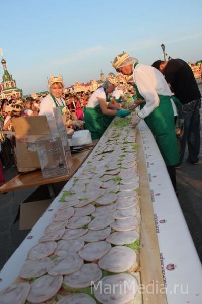 В итоге получился бутерброд длинной 89 метров 59 сантиметров и шириной 31 сантиметр. Рекорд зафиксировала специальная комиссия. Затем бутерброд был разрезан на кусочки для дальнейшей дегустации. Его удалось попробовать более чем 3500 человек.