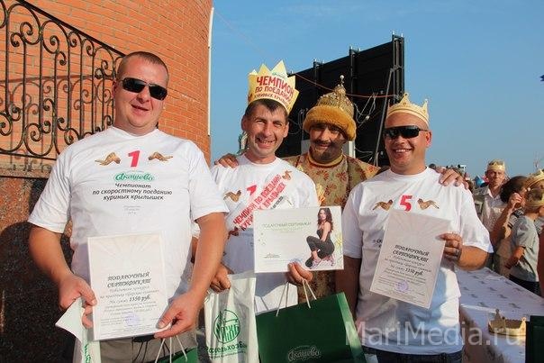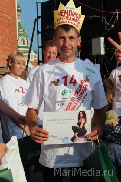 Состоялся первый в Марий Эл чемпионат по скоростному поеданию крылышек. Поистине это было очень зрелищное соревнование. В нем приняли участие 16 мужчин и женщин. Победитель съел 51 куриное крылышко от Агрохолдинга «Акашево»!