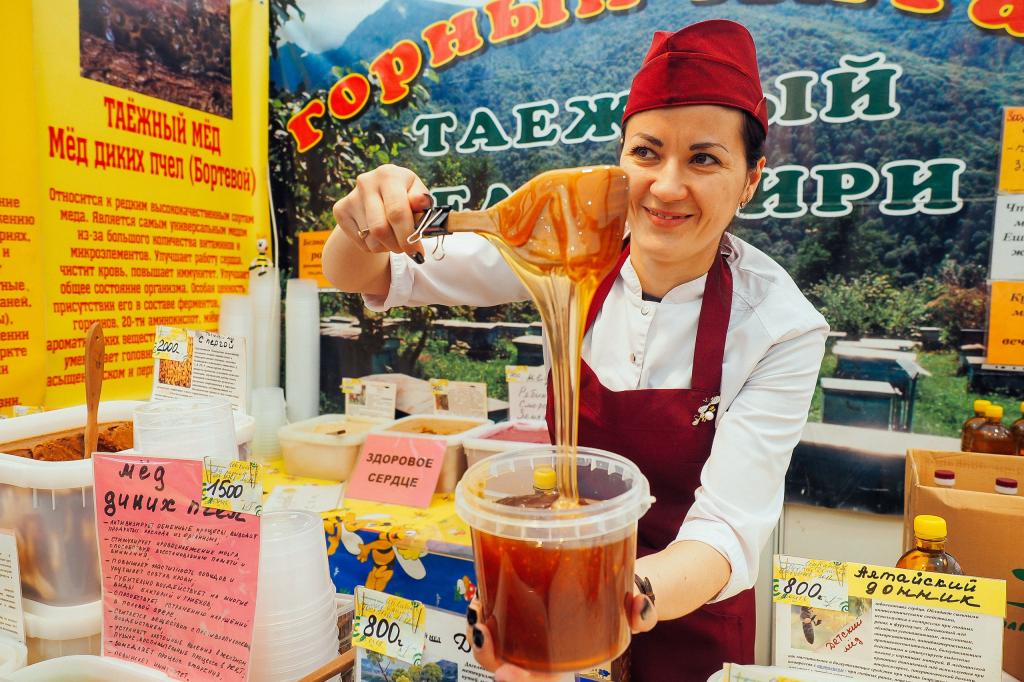 На ярмарке шикарный выбор деликатесов из рек Якутии, морей и океанов Дальнего Востока, оригинальных колбас и мясных рулетов, томленых в русской печи. Попробуйте также сыры из Абхазии, ягоды и грибы из Сибири, расписные имбирно-медовые пряники, восточные щербеты, более 20 видов халвы, рахат-лукум, южную чурчхелу, мед с пасек регионов России, чаи Цейлона, Кавказа, Краснодара.