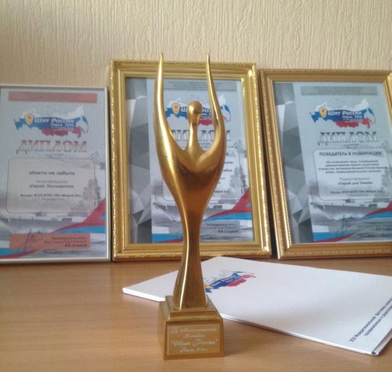 ГТРК «Марий Эл» достойно представила республику на XIХ Межрегиональном фестивале военно-патриотических телевизионных и радиопередач «Щит России», который состоялся с 9 по 12 июня 2016 года в Перми. Наград удостоены сразу три работы телерадиокомпании.