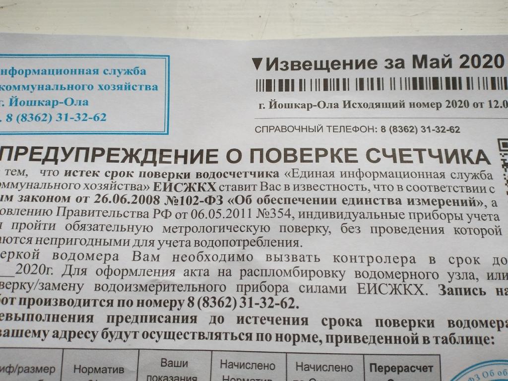 Жители Йошкар-Олы получили липовые извещения проверки водосчётчиков