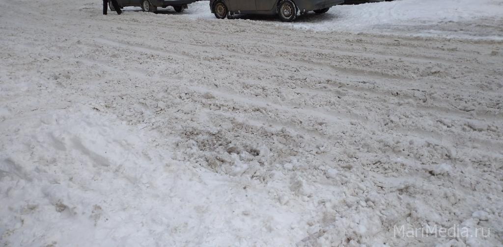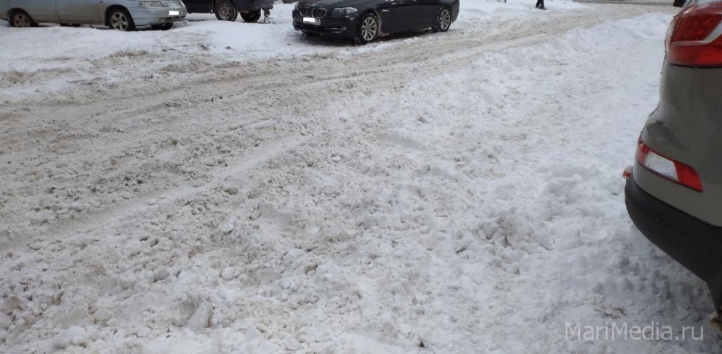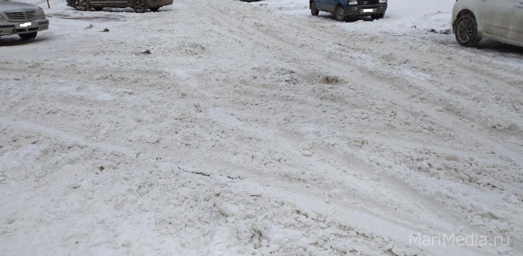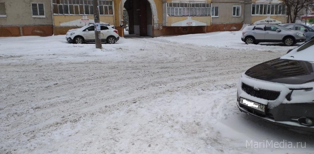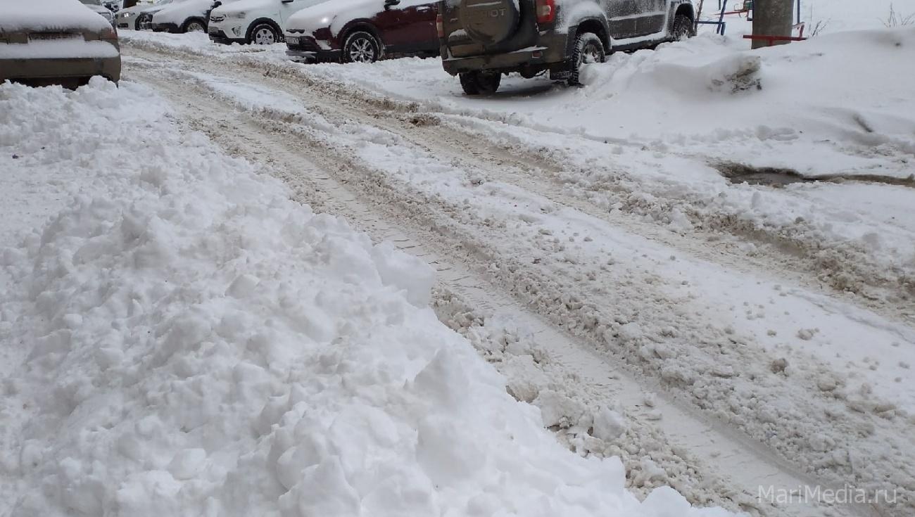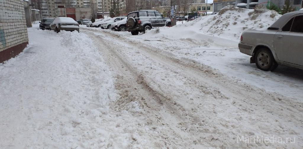 В большинстве йошкар-олинских дворов проезжие части и пешеходные зоны после воскресной непогоды занесены снегом. Управляющие компании не спешат вызывать снегоуборочную технику.