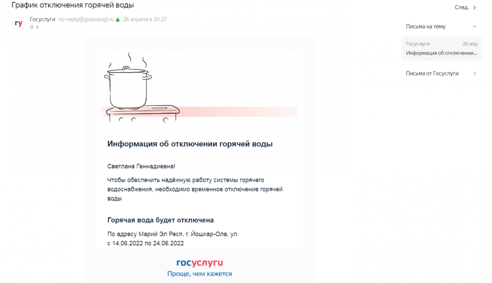 О плановом отключении горячей воды йошкаролинцев известит портал Госуслуг