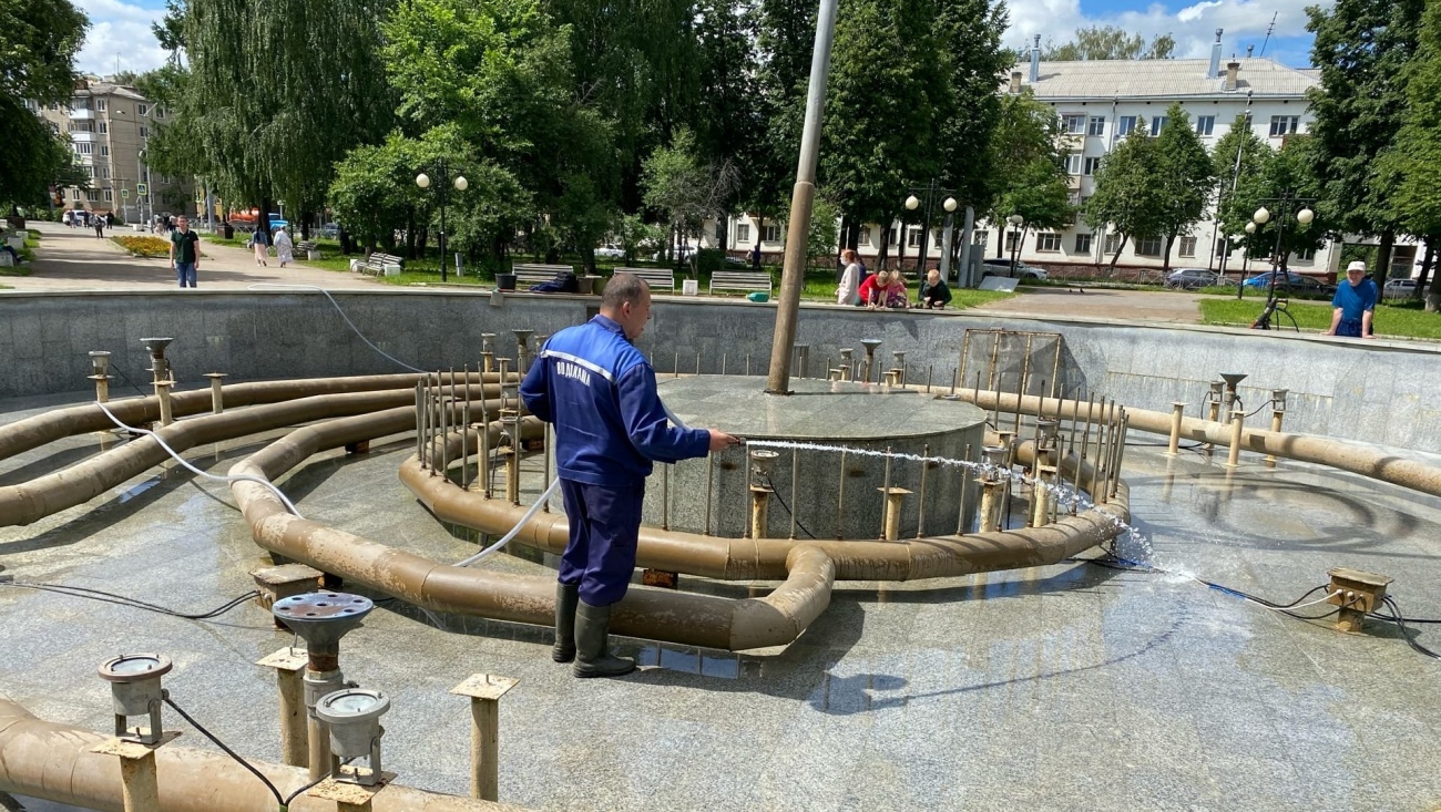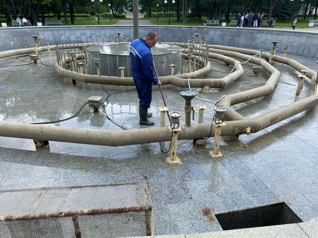 Сотрудники МУП «Водоканал» проводят очистку фонтанов Йошкар-Олы.