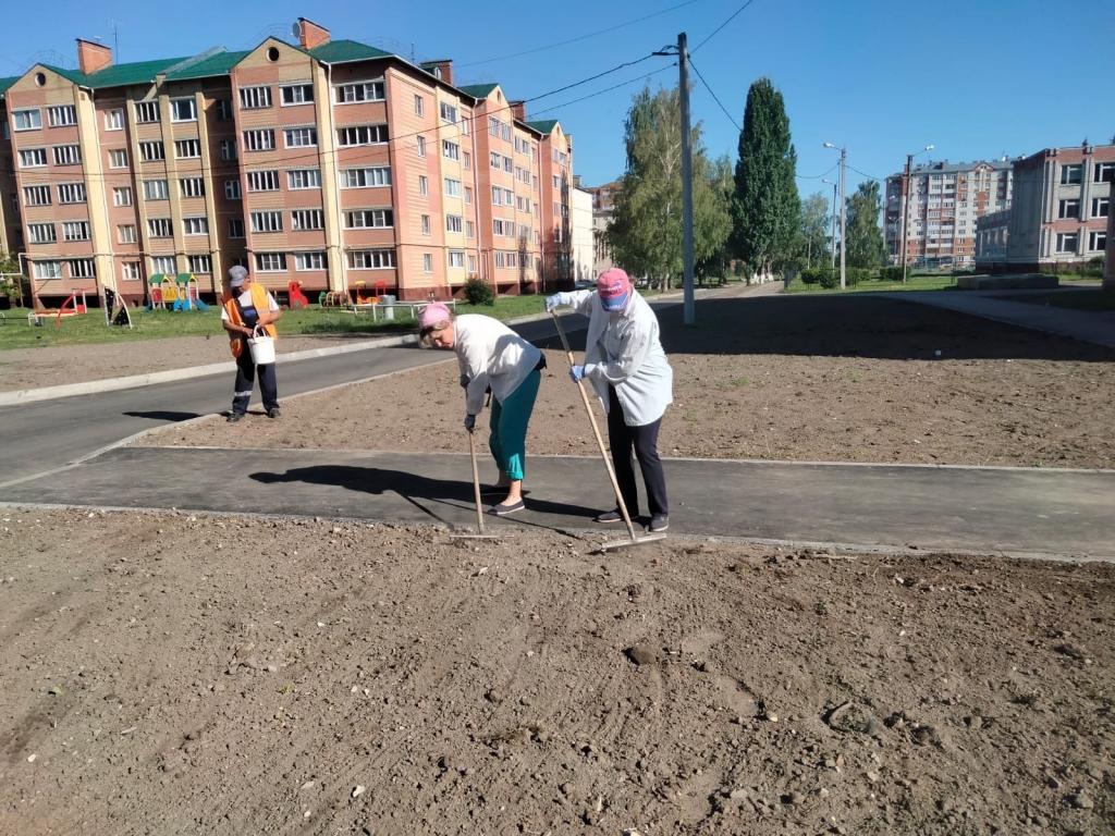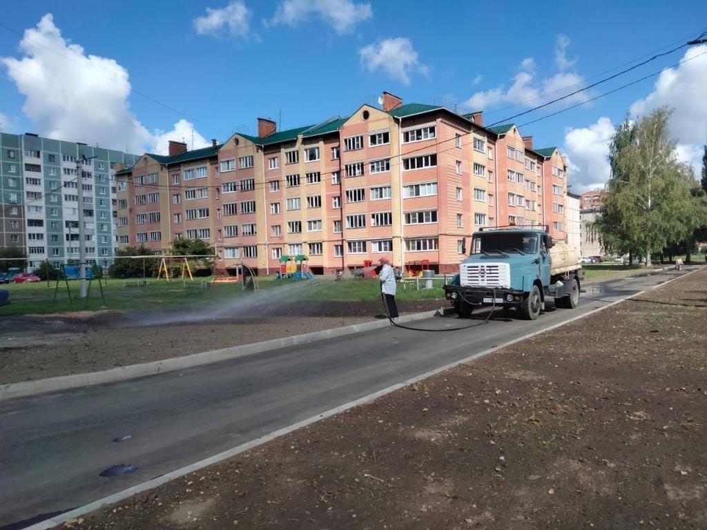 Сегодня коммунальщики вышли на расчистку дороги от пескомёта по улице Зарубина. А на улице Йывана Кырли вокруг заасфальтированных тротуаров проводятся работы по посеву газонных трав.