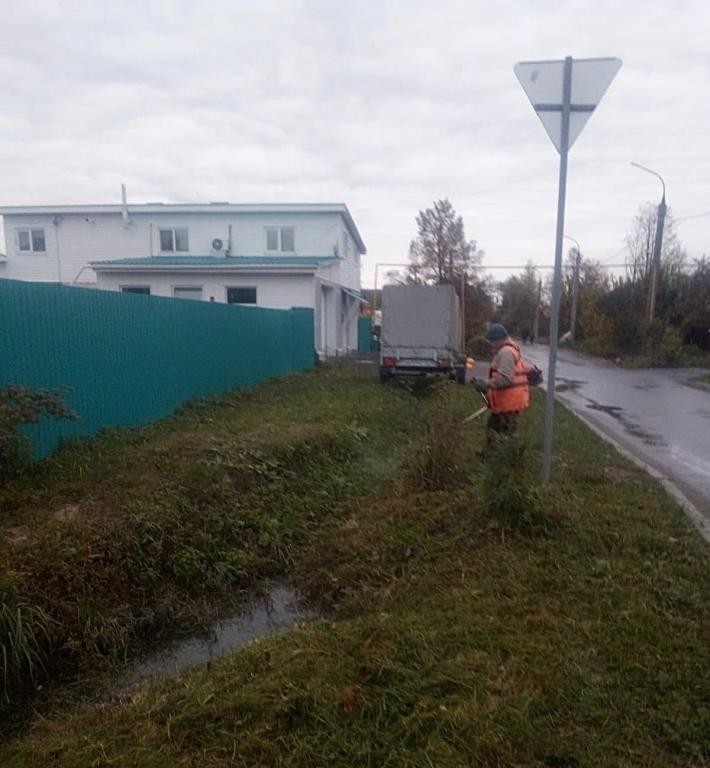 Кроме того, проводятся и другие работы по содержанию города. Так, рабочие с бензокосами продолжают косить придорожные газоны. В настоящее время они приводят в порядок территорию разворотного кольца в Гомзово и вдоль водоотводной канавы на ул. Комсомольской.