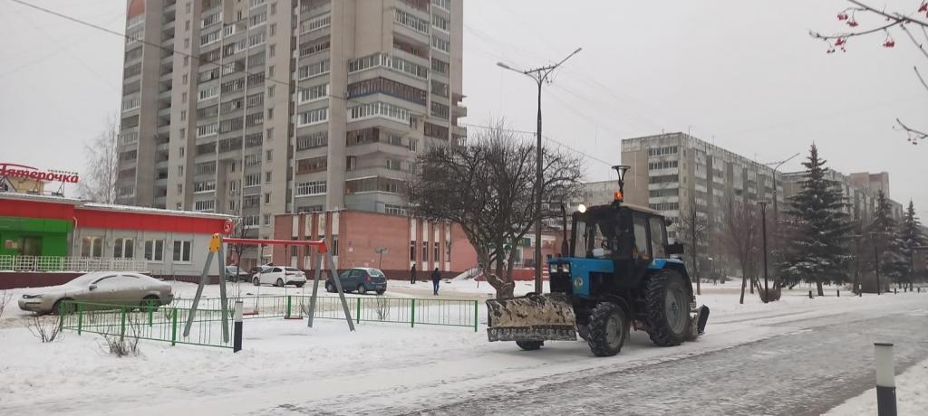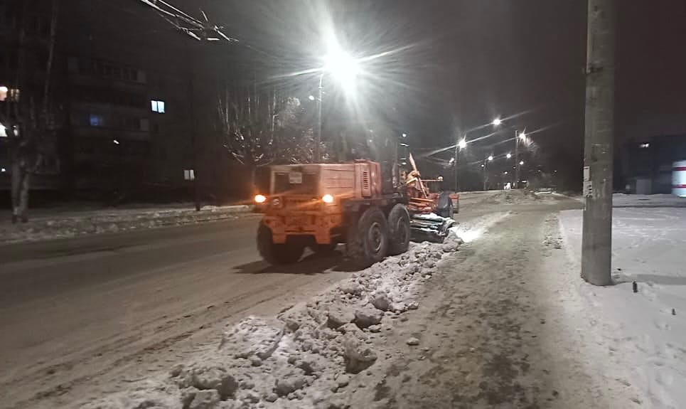 На улицах проводятся работы по грейдированию, обработке противогололёдными материалами, расчистке и вывозу снега.