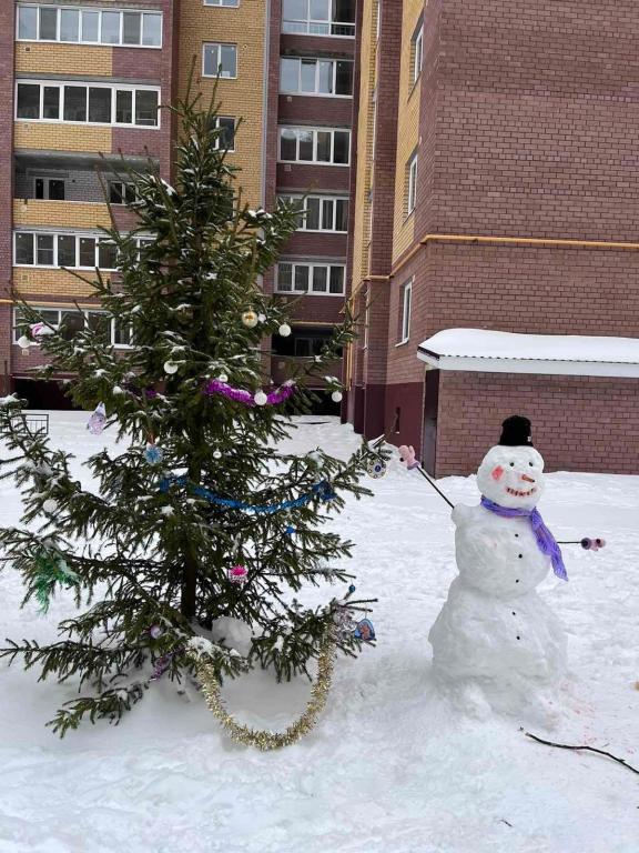 Игрушки для новогодних деревьев делают своими руками ученики школ и воспитанники детских садов города. К оформлению двора очень часто присоединяются жильцы соседних домов. Вместе с детьми они лепят снеговиков и украшают подъезды.