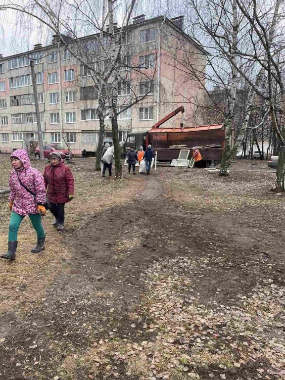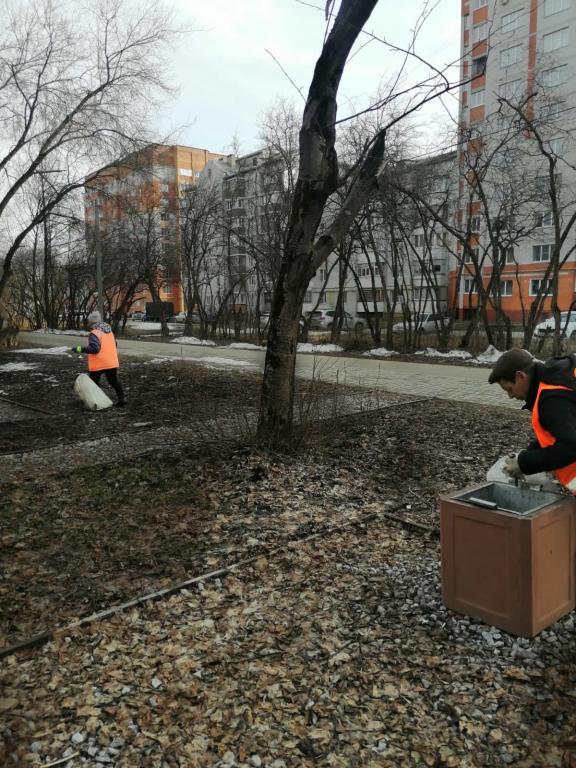 Начали наводить порядок и на придомовых территориях. Сотрудники управляющих компаний вывозят спиленные ветки, собирают мусор около подъездов.