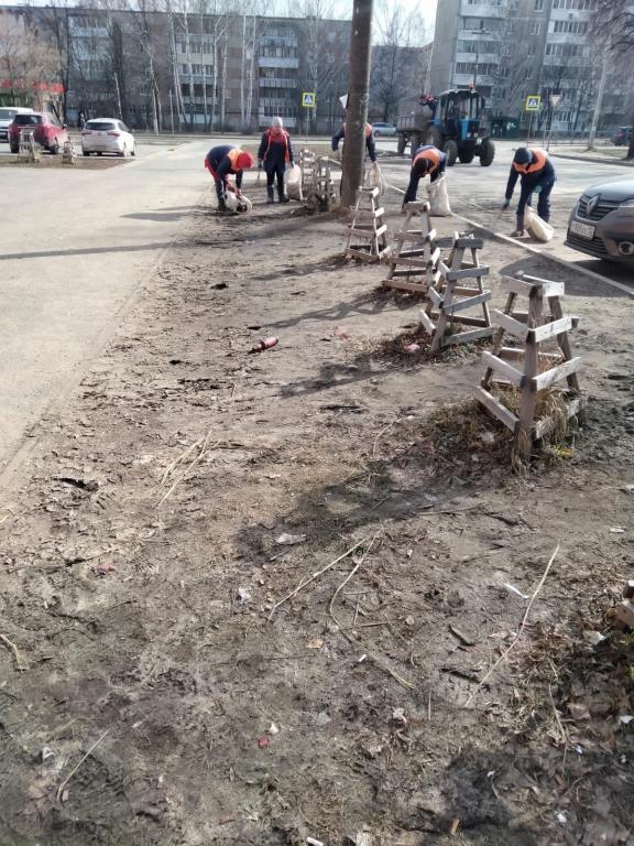На улицах Йошкар-Олы полным ходом проходит весенняя уборка.
