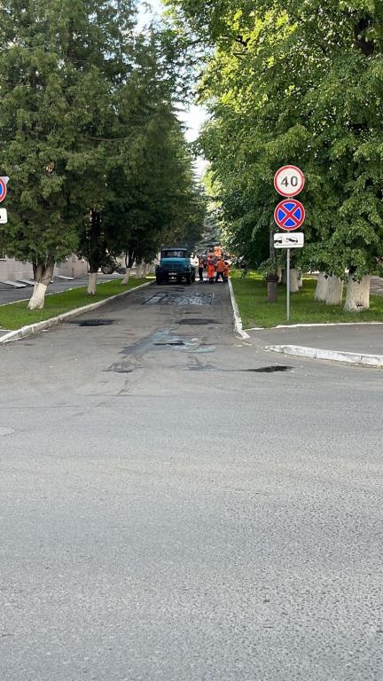 Часть специалистов МУП «Город» продолжает ямочный ремонт, начатый в выходные дни на ул. Хасанова и ул. Гоголя.