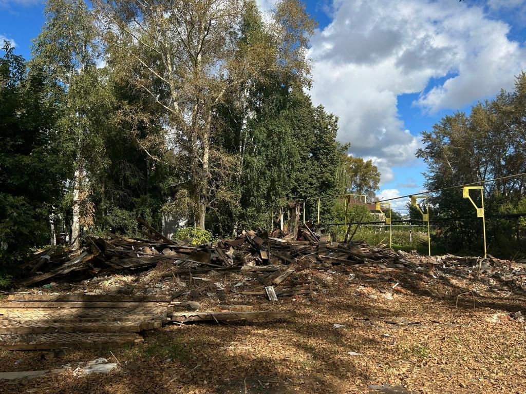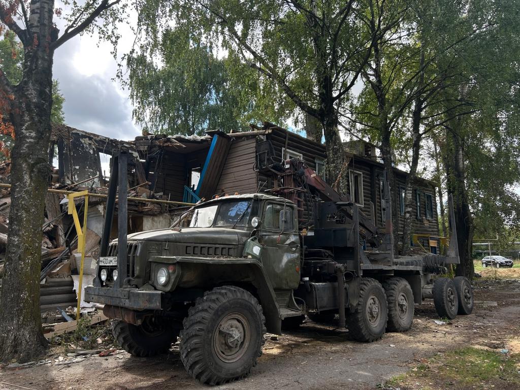 Накануне техника работа на улице Деповской, 12 на разборе двухэтажного деревянного дома. Работы проходят в рамках программы «Переселение граждан из аварийного жилищного фонда».