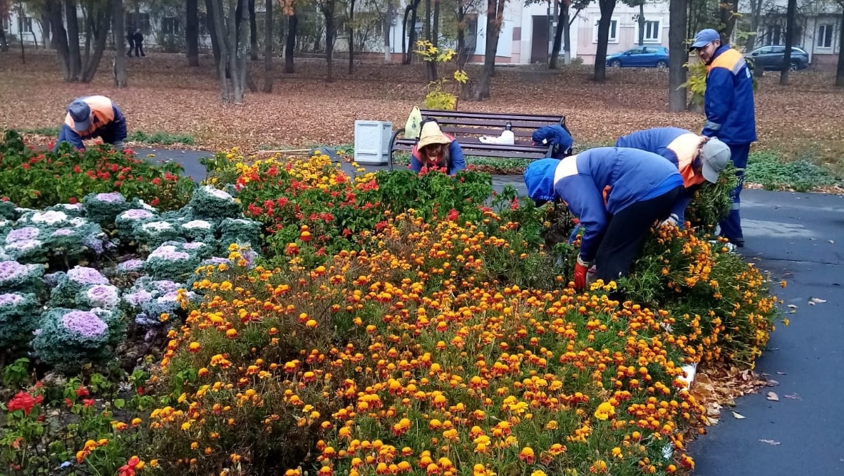 В этом году из-за теплой погоды сезон цветения затянулся до октября. Но впереди заморозки, и в городе начали готовить клумбы к зиме.