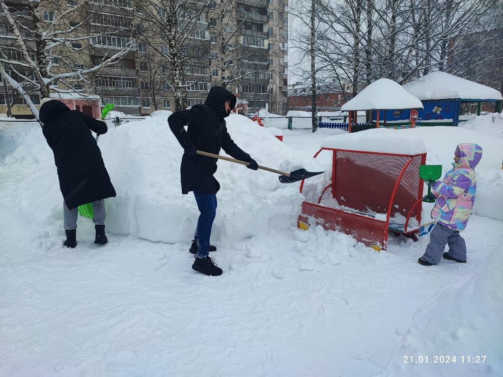 Посильную помощь в условиях снегопада оказывали в эти дни и родители, участвовавшие в расчистке территорий детсадов, рассказали в администрации города.