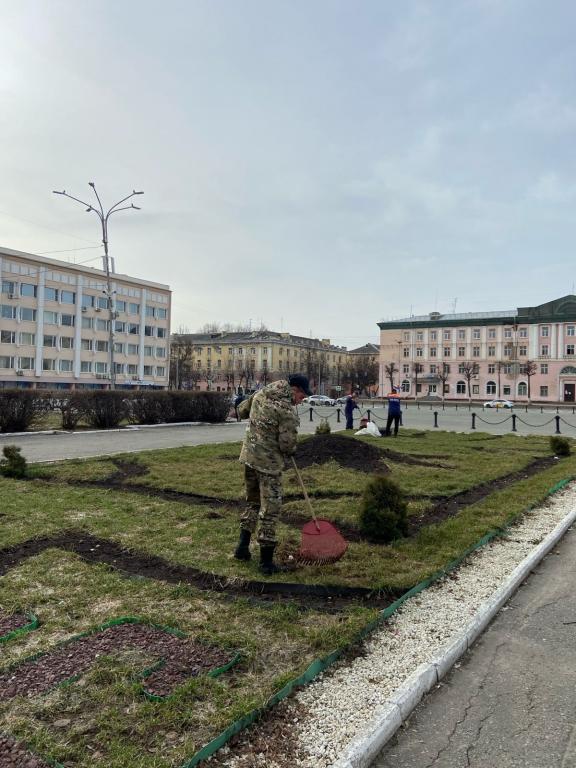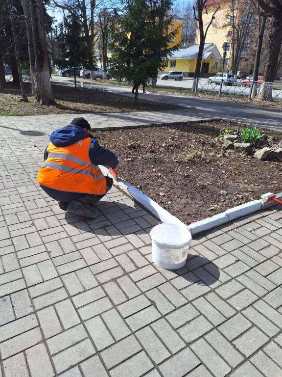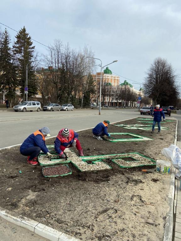 Сотрудники оранжереи МУП «Город» приступили к работам по цветникам. На некоторых клумбах начали восстанавливать узоры из мраморной крошки, на других красят бордюры и т.д.