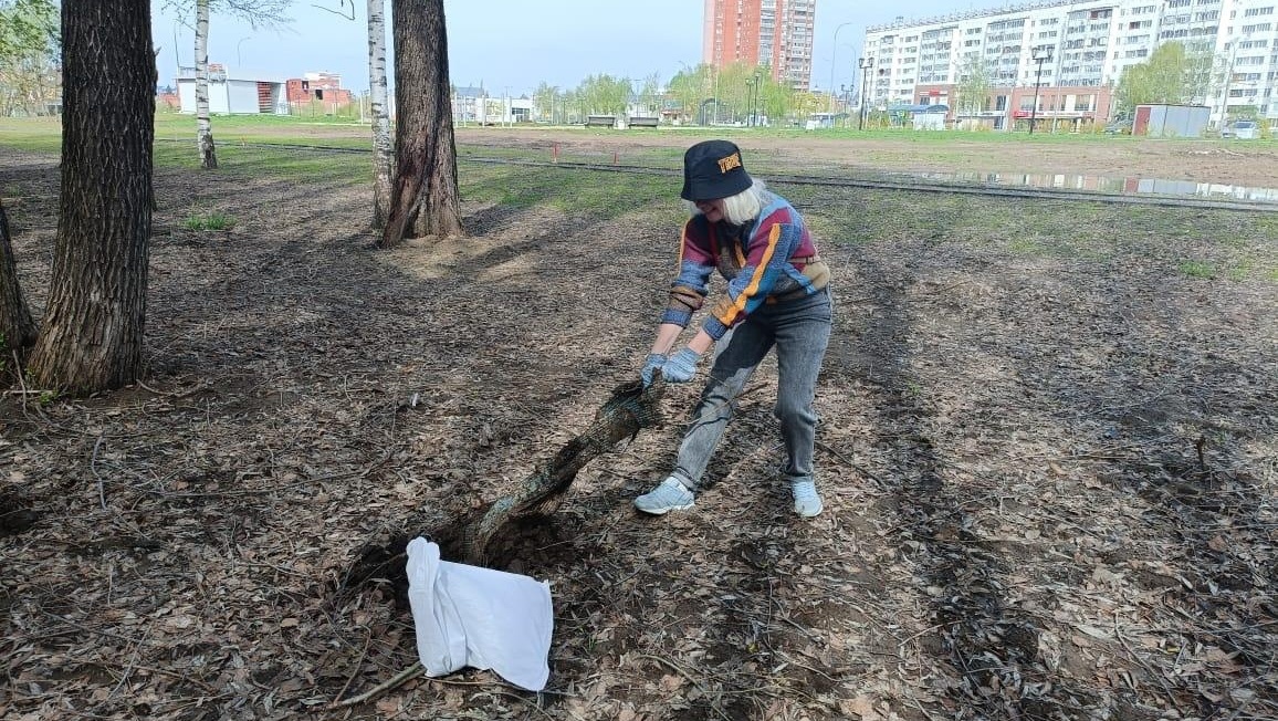 Дружной командой с территории убрали ветки, сухую листву и мелкий мусор. В парке, в целом, пока чисто, но кое-где встречаются бутылки и упаковки.