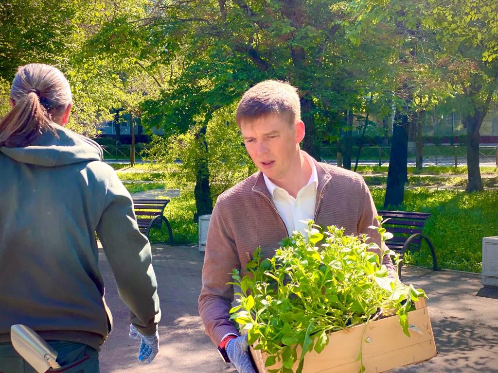 Сегодня специалистам МУП «Город» помог в высадке растений и первый заместитель мэра города Лев Покровский. Работы проводились в сквере Наты Бабушкиной. К ним присоединились и неравнодушные горожане.