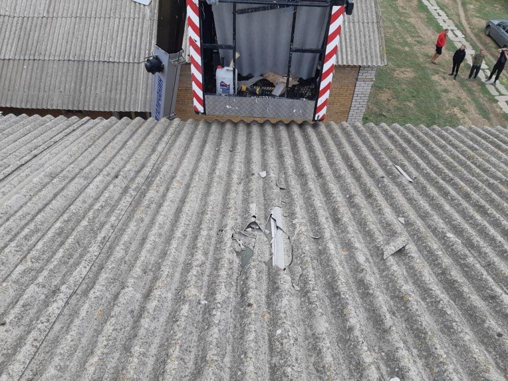 Шифер на здании был местами разрушен, из-за чего внутрь попадала вода. Мастера заменили повреждённые листы.