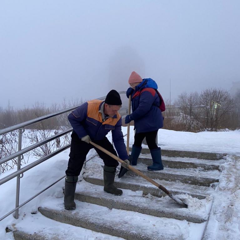 В городе уборка снега ведётся в режиме нон-стоп. Выходные сотрудников дорожных служб проходили в полном рабочем режиме, сообщили в мэрии.