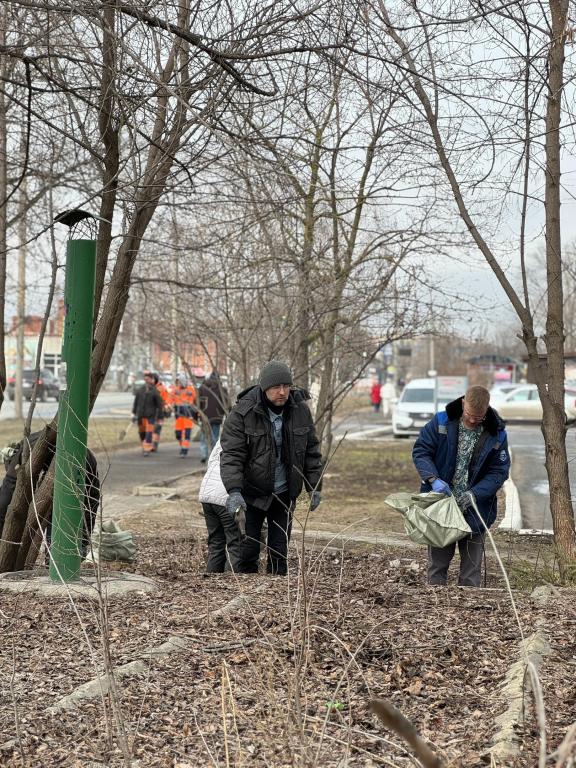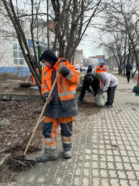 Работники муниципальных предприятий и сотрудники администрации города уже обходят с мешками, мётлами и граблями свои маршруты.