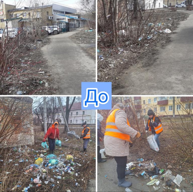 Сотрудники коммунального предприятия «Город» прибрали территорию возле пешеходной дорожки, ведущую от ул. Карла Маркса к ул. Яналова.