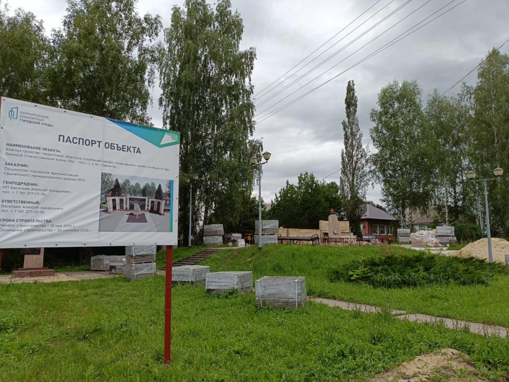 Территория у памятника благоустраивается в рамках национального проекта «Инфраструктура для жизни» федерального проекта «Формирование комфортной и городской среды». В течение лета будут заменены тротуарная плитка и ступени, ведущие к обелиску, обновлена система освещения, установлена мемориальная стена с именами Героев Советского Союза и полных кавалеров Ордена Славы, уроженцев Оршанского района.