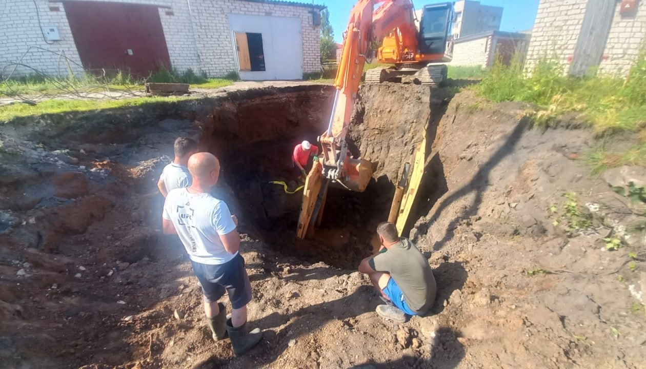 На улице Крупина, около канализационно-насосной станции, произошла просадка колодца и сети, из-за чего начался вынос грунта.