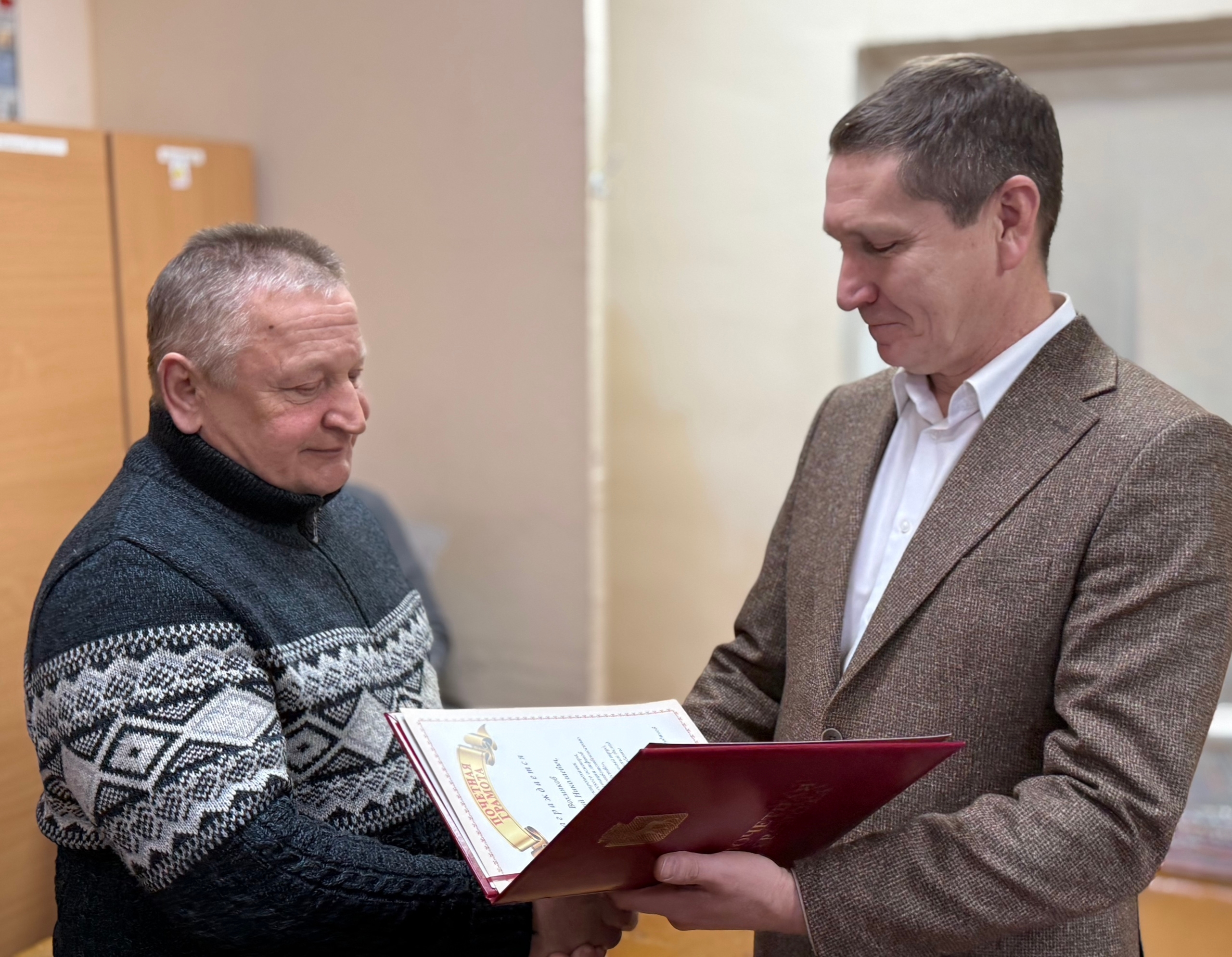 В честь праздника он вручил отличившимся сотрудникам почётные грамоты за многолетний добросовестный труд.