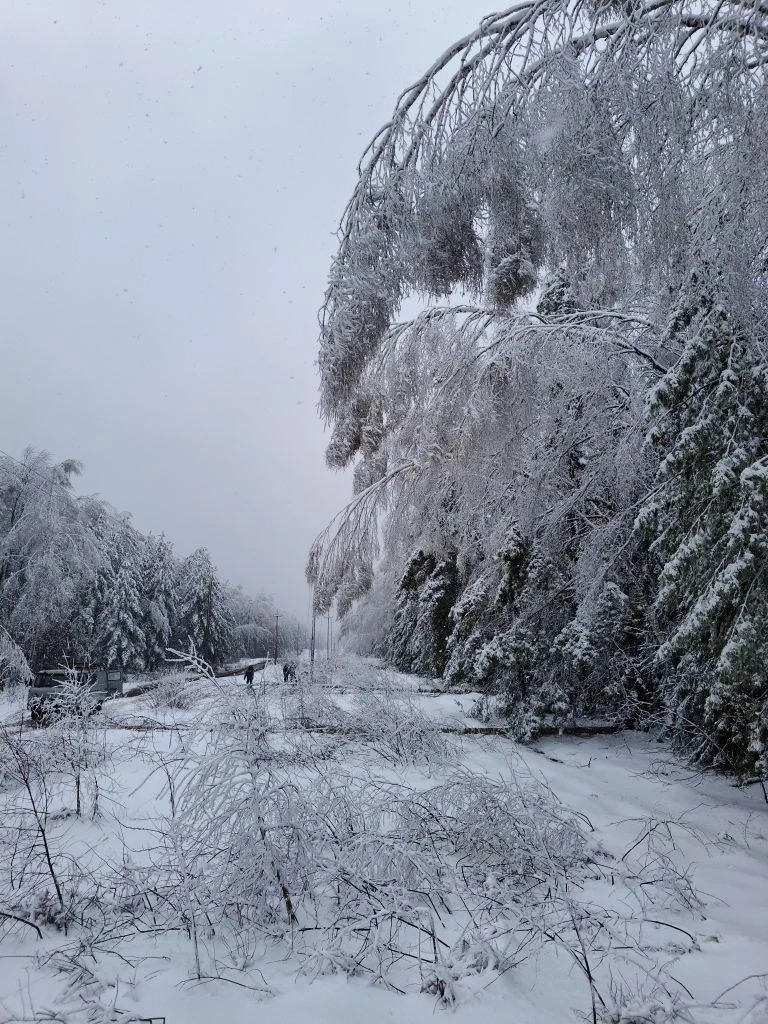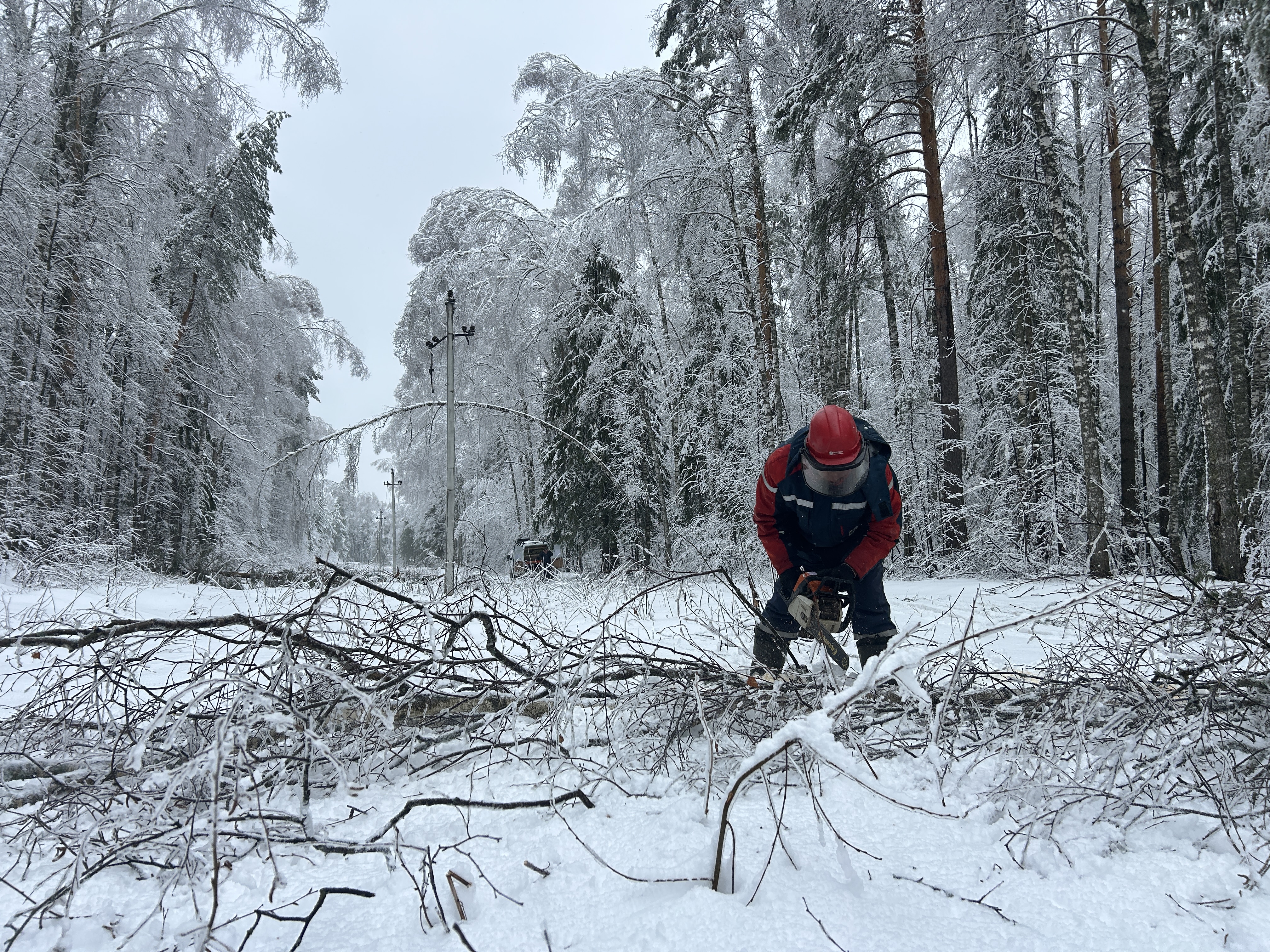 Налипание мокрого снега стало причиной падения деревьев и веток на линии электропередачи, обрывов проводов.