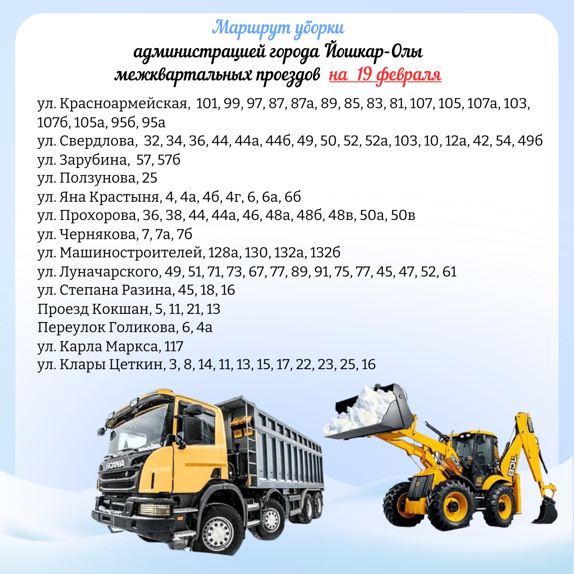 Завтра, 19 февраля, снегоуборочная техника приедет на расчистку межквартальных проездов 14 улиц Йошкар-Олы.