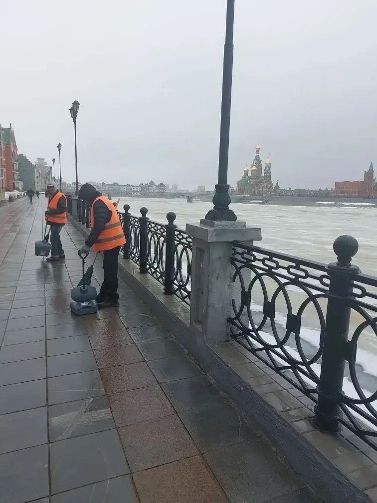 Работники подрядной организации, которые отвечают за эту территорию, занимались ворошением снега, расчисткой лестниц и гранитных плит на Патриаршей площади. Также коммунальщики отремонтировали калитку в Итальянском парке.
