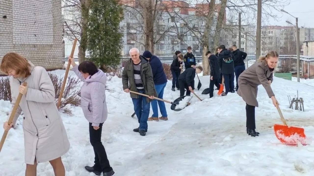 Вооружившись лопатами, йошкаролинцы в дружном порыве расчищали территории зданий от снега и мусора.