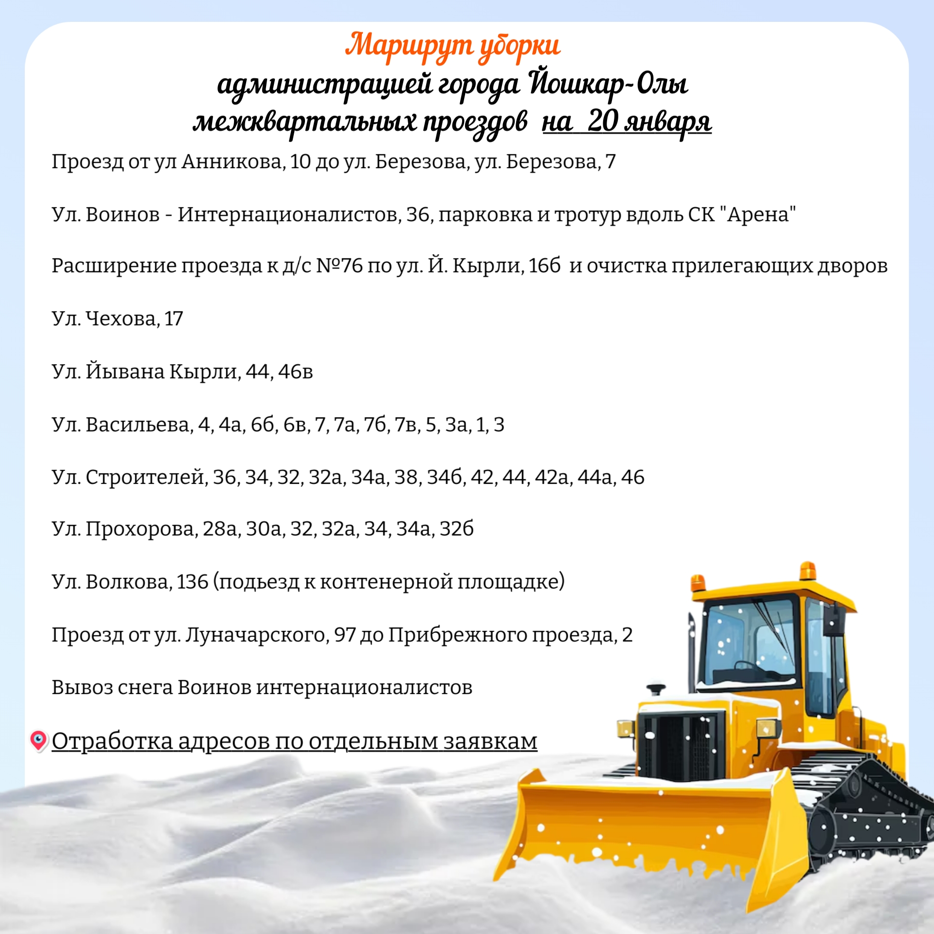 — Публикуем планируемый маршрут движения снегоуборочной техники по расчистке межквартальных проездов на 20 января, — сообщается на официальных источниках администрации города.