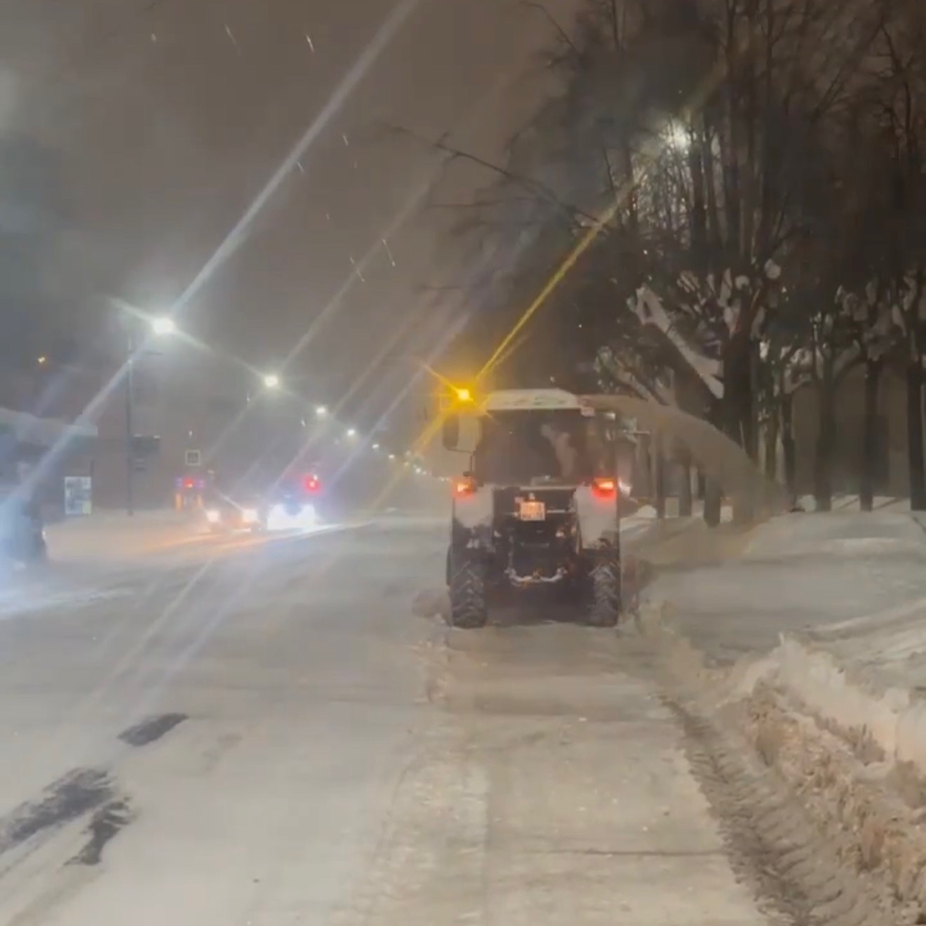 На улицах сегодня работают 72 единицы снегоуборочной техники. Из них — 32 транспортных средства от привлечённых организаций.