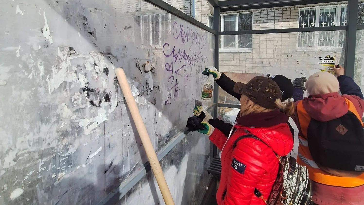 Бригады ручного труда вооружились тряпками, скребками и специальными средствами, чтобы оттереть уродливые надписи и различные объявления.