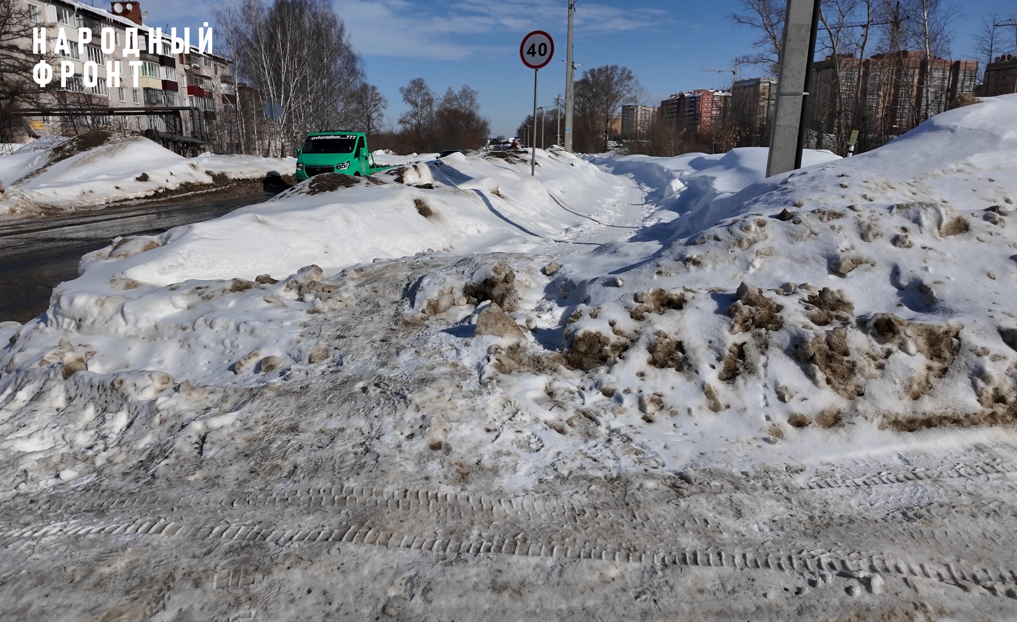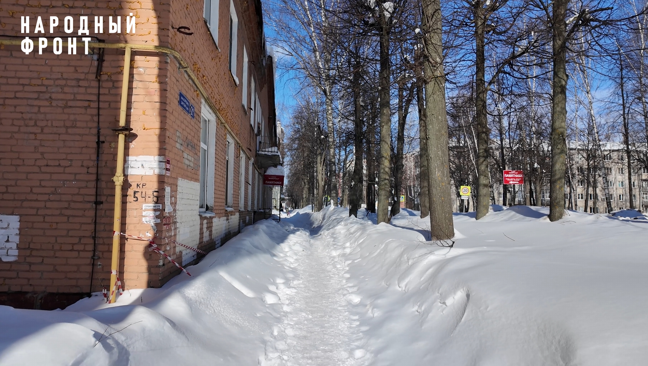 - ул. Зарубина, 21а — после очистки крыши тротуар исчез. Вместо него узкая натоптанная тропинка,