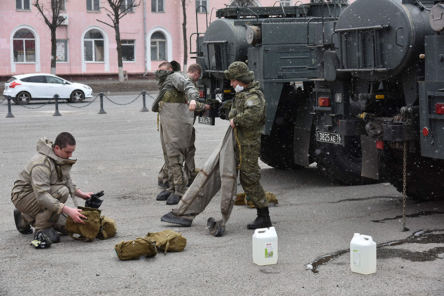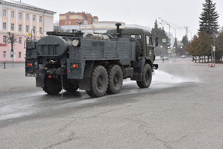 К дезинфекции улиц привлечена военная техника Йошкар-Олинской ракетной дивизии — это авторазливочные станции, предназначенные для полной дезинфекции вооружения, боевой техники и транспорта.