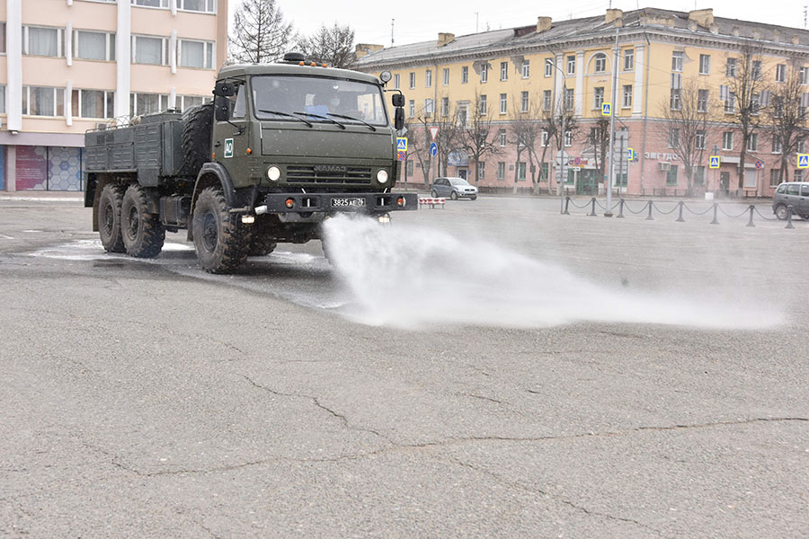6 апреля на дезинфекцию города вышли три единицы спецтехники. С 7 апреля столичные улицы будут обрабатывать уже шесть таких машин.