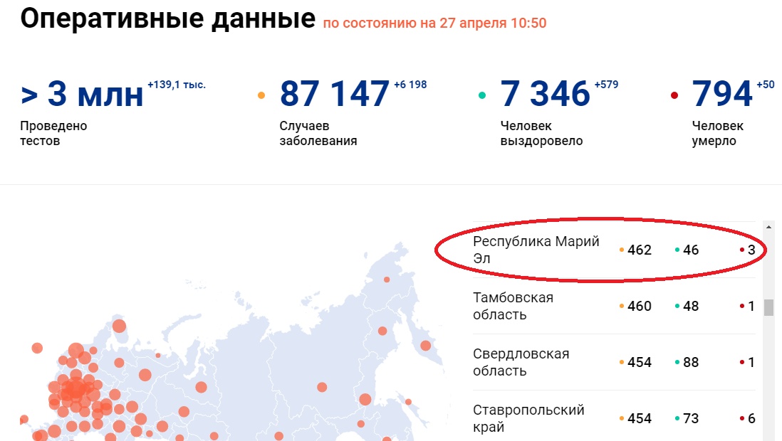 В статистике по-прежнему значится трое умерших от коронавируса. Минздрав Марий Эл опроверг эти данные. В ведомстве уточнили, что в выходные в республике зафиксирован только один смертельный случай. Скончалась пациентка, у которой, кроме коронавируса, был ещё рак легкого. Таким образом, всего в республике от новой коронавирусной инфекции скончалось два человека.
