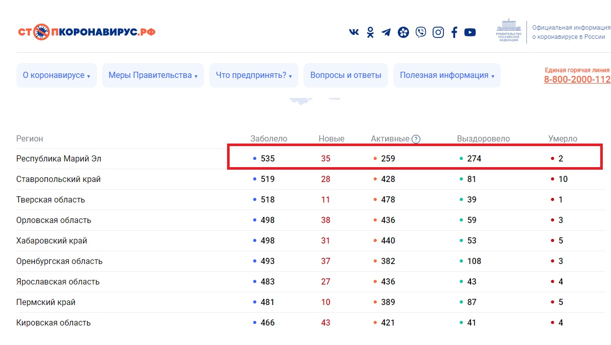 И снова в Марий Эл зафиксировано увеличение заболевших коронавирусом. По информации сайта «стопкоронавирус.рф», официальное число заболевших увеличилось на 35, достигнув цифры в 535 человек.