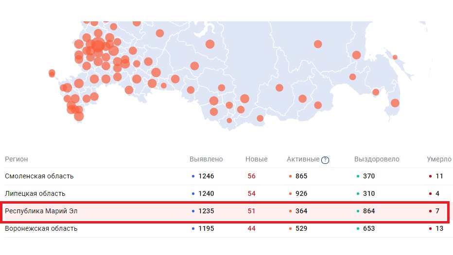 За последние сутки в России 8 926 подтверждённых случаев коронавирусной инфекции в 81 регионе, в том числе выявлено активно 3 577 без клинических проявлений. В Республике Марий Эл выявлен 51 новый заболевший коронавирусом, 3 пациента выздоровели, сообщает Информационный центр по мониторингу ситуации с коронавирусом.