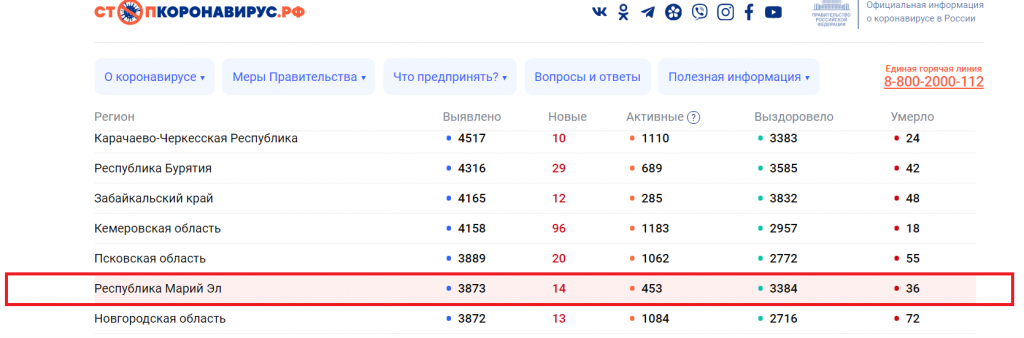 За весь период по России умерло 14 725 человек, в Марий Эл — 36.